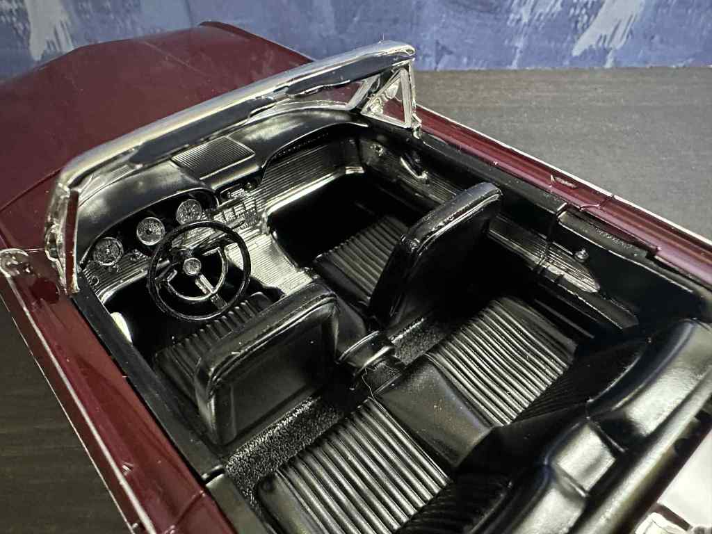 CAR BACKGROUND :: The Thunderbird had been through a number of iterations since the original 2-seat sports machine, and the ’62 was the biggest and heaviest yet. At 205in, this convertible was a driveway-filling hunk of metal. That said, the T-Bird for this year is, IMHO, the best looking one of all. The lines are crisp and simple, the bumper is stylish, the hood has just enough muscle suggestion, and it looks as if it would entice even the most boring person into blasting down the road with the top down and music up! The big heavy looker didn’t become a disgusting slouch either. With a 390ci and some 300 horses, the big coupe would gobble up tarmac as well as most cars on the road. No, you wouldn’t see any of these suckers at the local dragway, but it was about style and comfort more than laying rubber or time slips.
