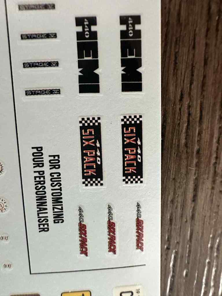 This Charger came with 440 and 426 engines back in ’71. This model kit comes with the ability to build a 426 Hemi. GREAT choice. Therein lies the issue – this kit not only comes with 440 decals (for a 440 not included) but also for a 440 Hemi and 440 6-pack. The first NEVER existed from the factory, and the second doesn’t exist in this kit (no parts for a six-pack). Yeah, you can certainly pull parts from other kits to make this work, AND I happened to make a ’70 Cuda with a hemi six-pack [here] as something different, but for purists, half the sheet is CRAP.