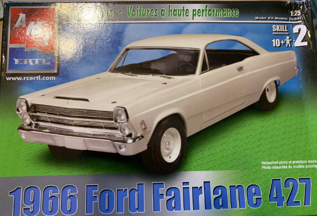 1 set of tires and rims; 427ci, V8 (that looks like a dressed up 390 from the GTA kit); hood with hole for larger hood scoop. Good: The most wicked of all Fairlanes; very good build. Bad: Getting very expensive; even with a 427, still not exceptionally fast; laughable decal sheet.