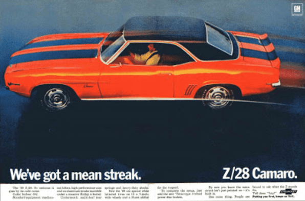 CAR BACKGROUND :: Well, the Mustang completely destroyed all competition in one foul swoop. GM and Chrysler were playing catch-up in a way that has never happened since. Thankfully for Chevrolet that the Camaro was a gorgeous, potent, inexpensive alternative to the Stang, and ate up the Pony’s sales faster than Pac-Man swallowed ghosts. With 302, 396, and even a brutal 427, the Camaro was a match speed wise as well. The 302ci in my Camaro would have developed 290 underrated horses and would launch past the ¼ in high 14s without too much effort. Sure, you could opt for the 427 from the Yenko boys, but that behemoth under the hood meant that the Camaro cornered more like a Volare than a muscle car.