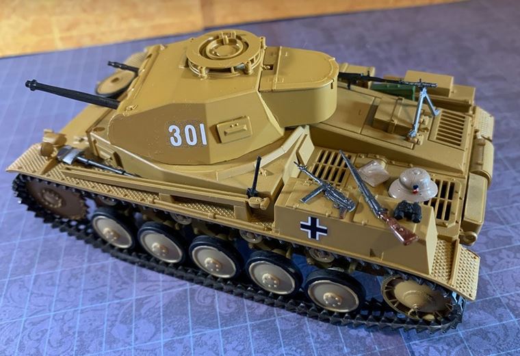This tank had many design flaws early. The Ausf A, B,and C all had significant armor deficiencies and that lead to further redesign. The Ausf F was a much better iteration, but were still a placeholder so bigger, better tanks could be produced (Panzer III, IV). The Ausf F tank would likely have been used in recon missions, but this particular color scheme would have been used in Germany’s Libya campaign.