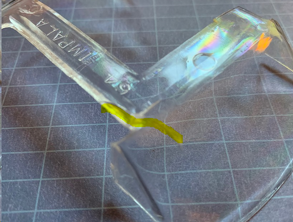 Now, as much as I believe this to be a necessity, I also believe it can be tricky if you are inexperienced. I used an extra set of glass to show if you cut too close to the windshield, you can end up with a horrifying crack through the viewable section (I highlighted it as it was tough to see). The idea is to clip it at points that are thinner or at break points. Again, you can use trimmers if comfortable, but you could use all kinds of saws, drills, or hobby knives if you wish to be more careful.